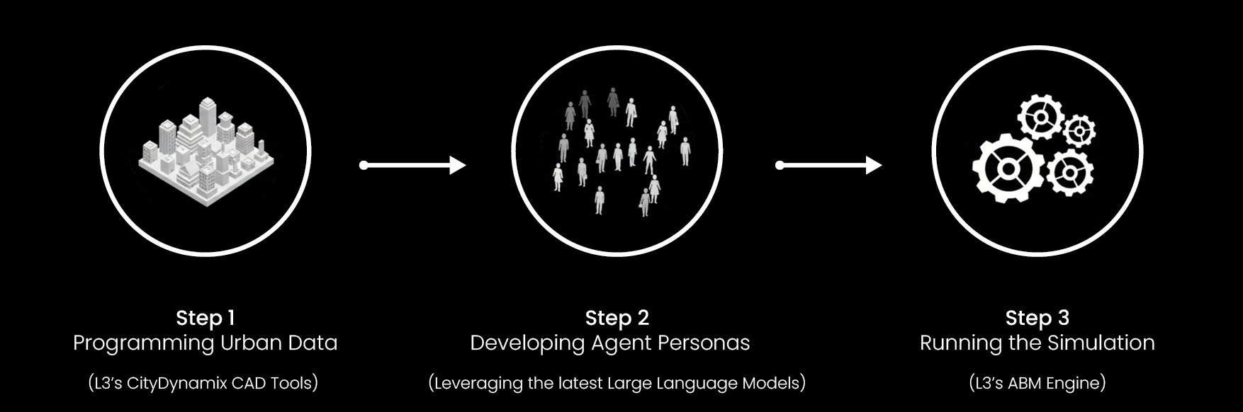 L3cities brings three-dimensional designs to life by populating them with synthetic inhabitants—making human behavior visible and allowing cities to be tested before they are built. We work directly with design teams through tools that integrate seamlessly into existing workflows.